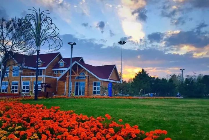 ?兩層的餐廳、辦公綜合服務中心,麥黃色的外墻,深紅色的屋面,外觀立面造型豐富的設計,坐在面朝大海的餐廳里,窗外的海浪和沙灘,以及嫩綠的草地,簇擁的紅花,立刻心情愉悅起來…..